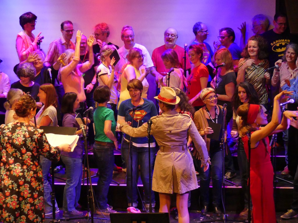 Mit Freude, Glücksgefühlen und auf rosa Wolken schwebend blicken wir zurück auf ein tolles Konzert-Wochenende in der Postremise. Es ist uns geglückt, augenzwinkernd und facettenreich die schönsten Klischees und Unterschiede zwischen Männern und Frauen musikalisch zu feiern. Durch die Unterstützung der professionellen Musiker Will Bartlett (Freiburg im Breisgau) und Márton Juhász (Basel), die Regieanweisungen von Manfred Ferrari sowie die Licht- und Tontechnik von Gian Giacomo Walther konnten wir ein unterhaltsames und kurzweiliges Programm präsentieren. Zwei Aufführungen in einer beinahe platzenden Postremise und ein begeistertes Publikum waren unser Lohn für die vielen intensiven Chorproben mit unserem Chorleiter Heinz Girschweiler.