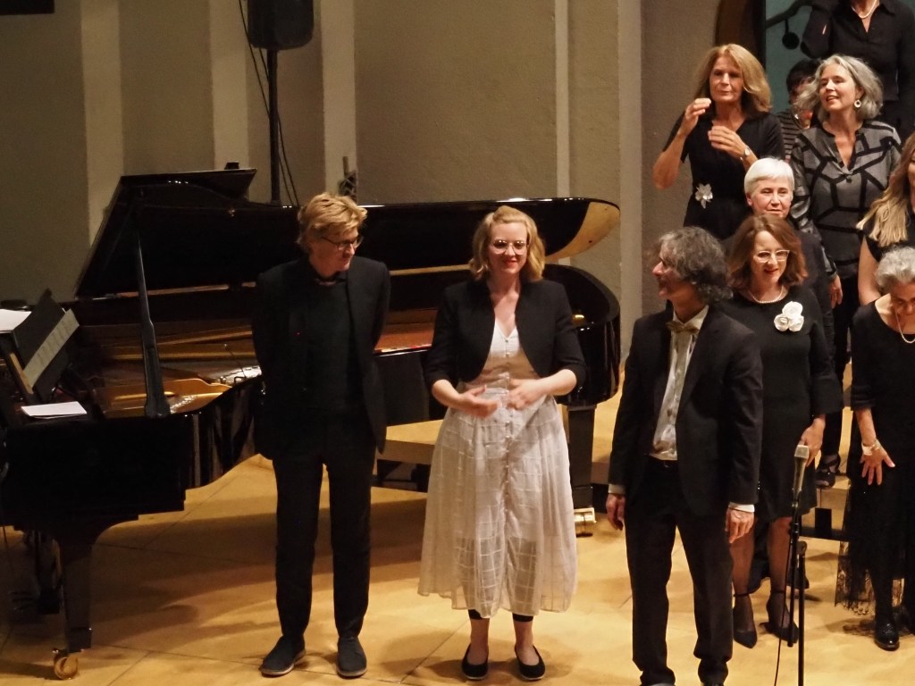 Wir danken herzlich unserem Publikum, das sich wunderbar von unserer Stimmung mitreissen liess; den beiden Musikern, die sich unseren Eigenheiten so geduldig und charmant angepasst haben; Manfred Ferrari und Gian Giacomo Walther, die uns stimmungsreich in Szene setzten; und nicht zu vergessen den mutigen Solistinnen und Solisten aus unseren eigenen Reihen: Heidi, Ursina, Anna, Barbara, Leo, Martin und José sowie unserem unermüdlichen Chorleiter Heinz Girschweiler.